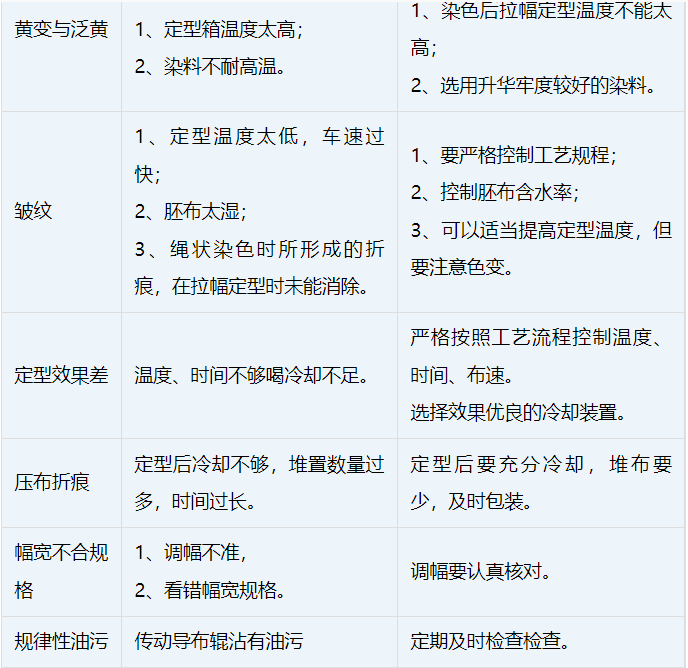 ① 為消除高溫中形成的皺痕,拉幅定型溫度要比染色最高溫度高30~40℃。