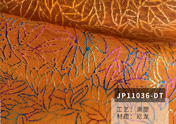 不耐髙溫的布料或網孔較大布料均不適宜滴塑印花:因受高溫布料而收縮起皺變形;網眼布滴塑印花時易漏漿,凸起的花型不易形成。塑漿中可加入各種功能性顏料如:七彩粉、鐳射粉、珍珠粉、熒光粉等,可以印制出多種風格的滴塑花布供客戶選擇。滴塑印花還可與靜電植絨印花組合印花生產出新穎別致印花布,是市場上人們難以見到的新產品。